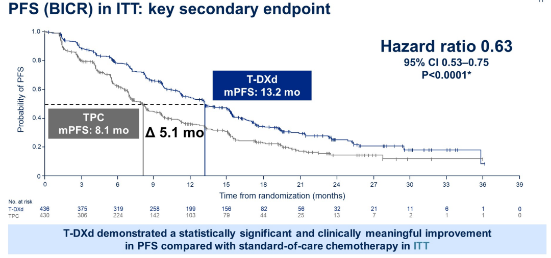 △DB-06研究HER2低表达、意向性治疗人群(ITT)、HER2超低表达患者的PFS